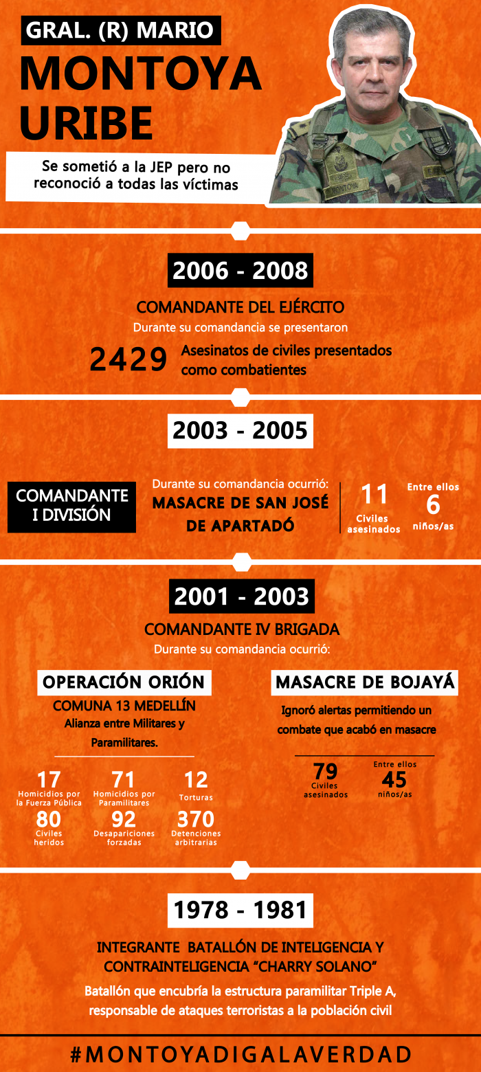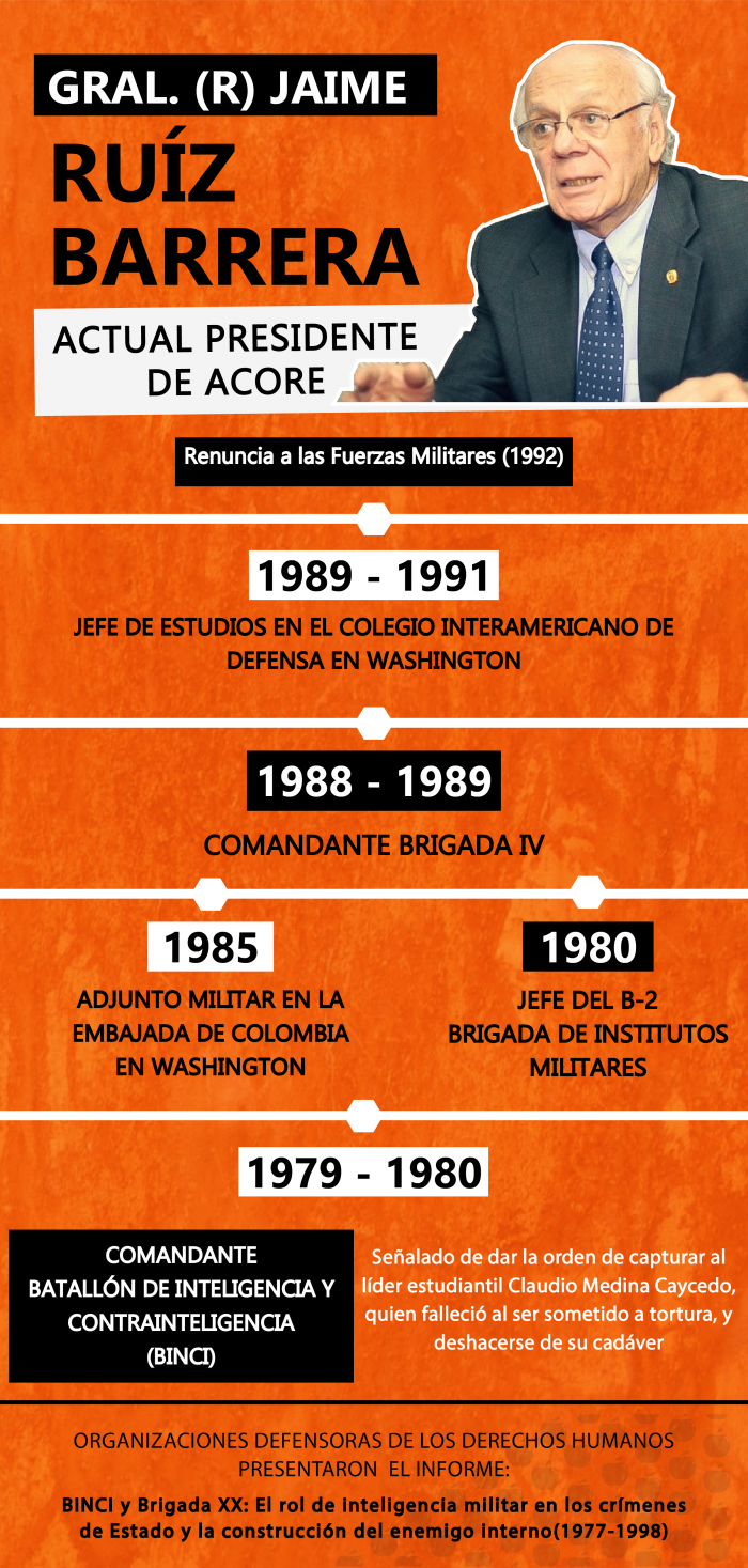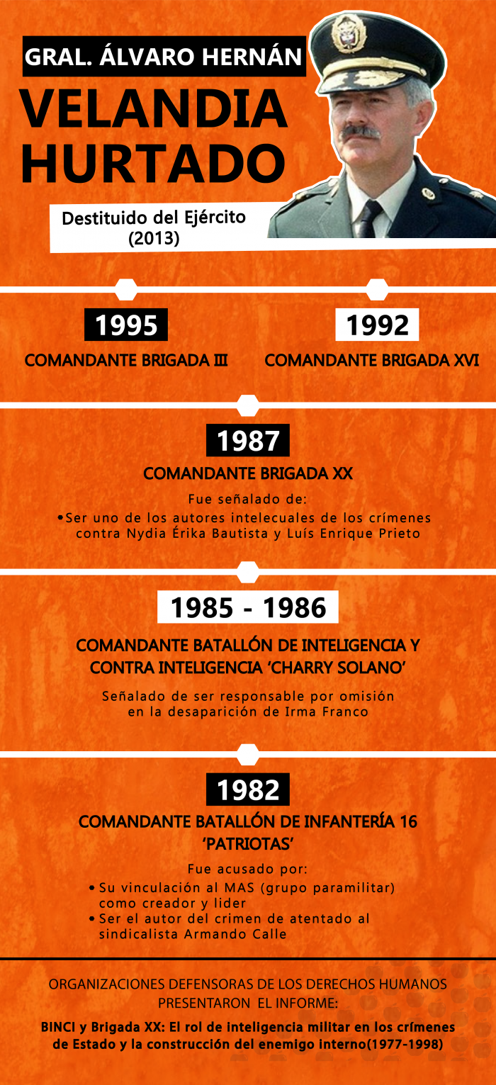 El informe a la JEP relaciona hechos que comprometen la presunta responsabilidad de varios de quienes fueron los superiores jerárquicos del Batallón de Inteligencia y Contrainteligencia Charry Solano y de la Brigada XX entre los que se encuentran: el Mayor General (R) Iván Ramírez Quintero, el Brigadier General (R) Álvaro Hernán Velandia Hurtado, el General (R) Harold Bedoya Pizarro, el Brigadier General (R) Jaime Ruiz Barrera y el General (R) Miguel Vega Uribe. (Ver hojas de vida al final de esta nota.)