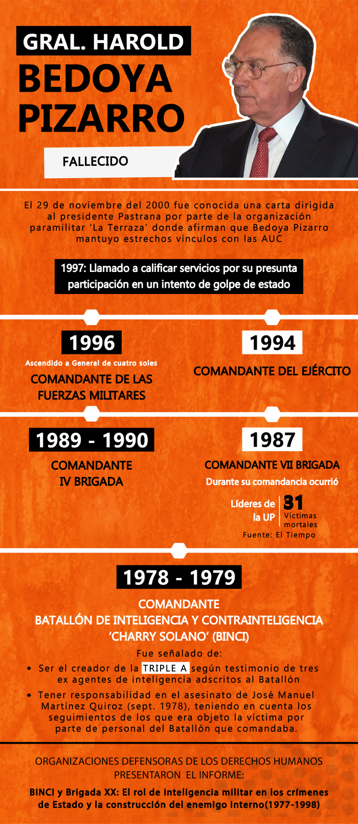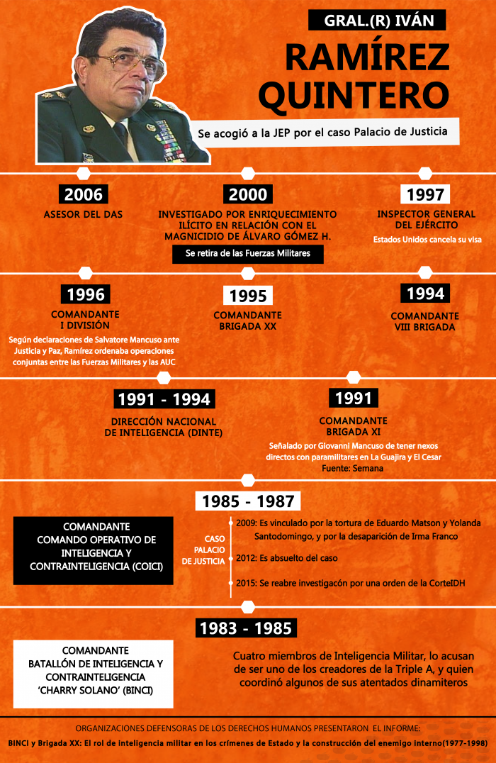 donde se documenta cómo entre 1977 y 1998, los organismos de inteligencia adscritos al Ejército Nacional utilizaron los medios humanos, técnicos y tecnológicos a su alcance para llevar a cabo la persecución de personas que hacían parte de movimientos políticos afines a ideologías de izquierda o comunistas. El BINCI se creó en 1964 y en 1986 se transformó en la Brigada XX, la cual fue desintegrada en mayo de 1998 luego de las denuncias por violaciones de Derechos Humanos provenientes de la embajada de Estados Unidos.